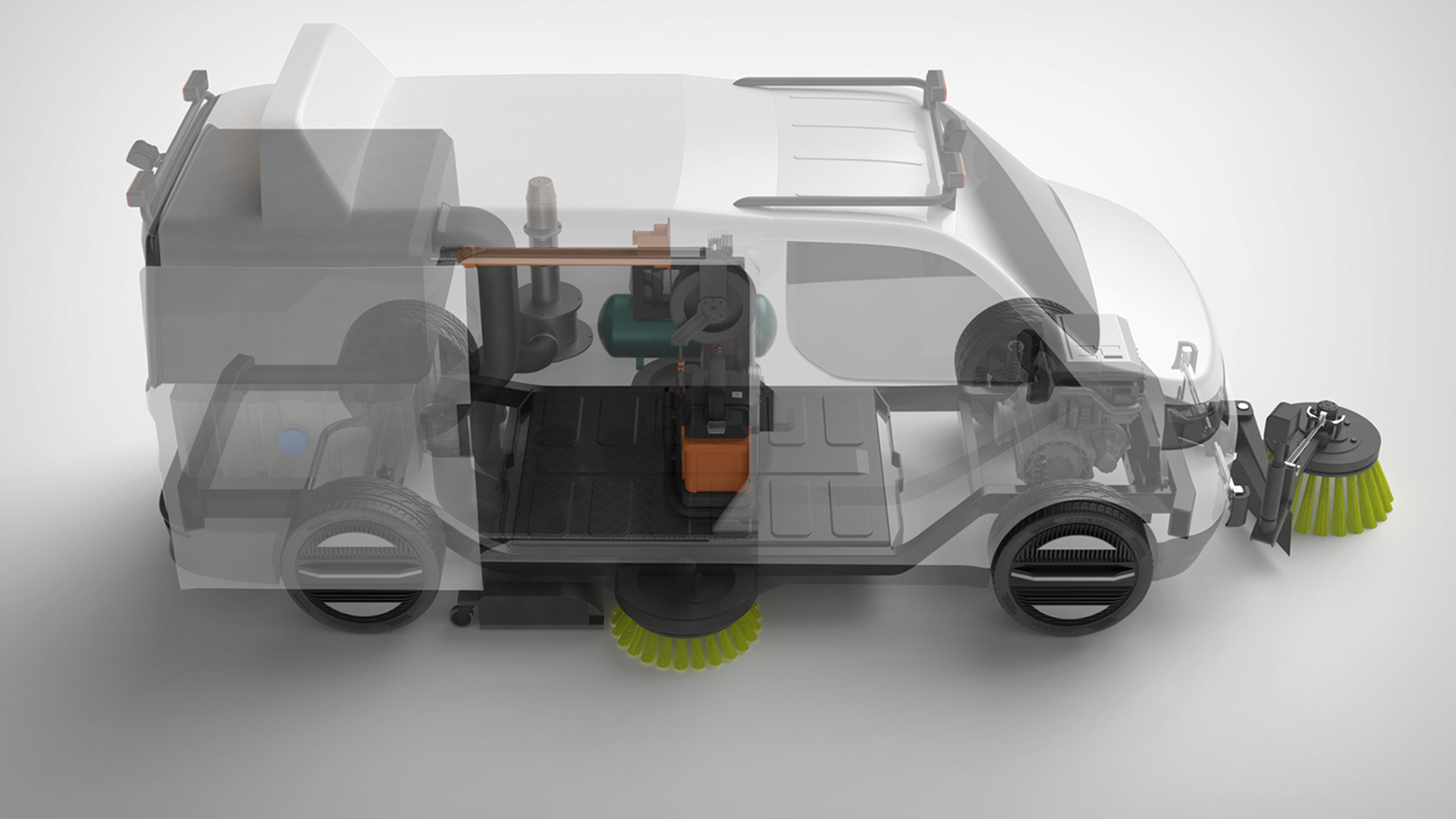 도시환경을 위한 전기 노면 청소차 디자인입니다.