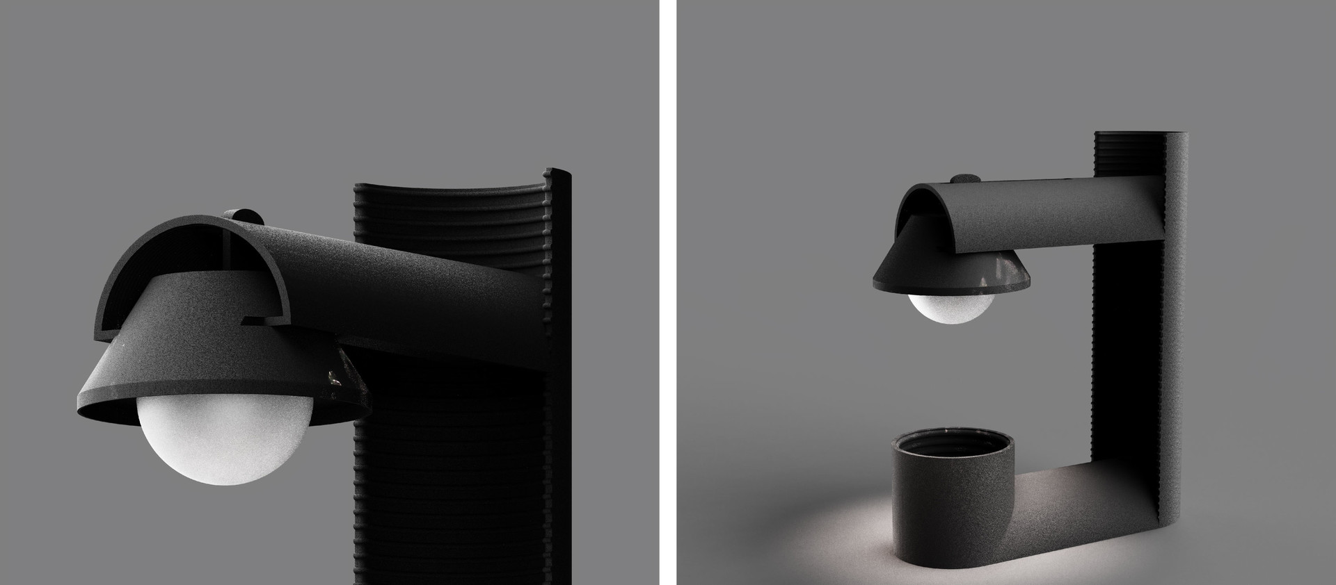 Negative Pipe는 반원과 반복된 파이프 구조로 이루어진 조명 오브제입니다.